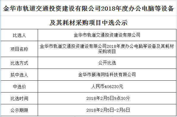 金華-義烏-東陽市域軌道交通工程軌道、公交乘車碼二碼融合清分系統集成項目的中標候選人公示