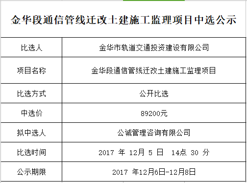 金華-義烏-東陽市域軌道交通工程軌道、公交乘車碼二碼融合清分系統集成項目的中標候選人公示