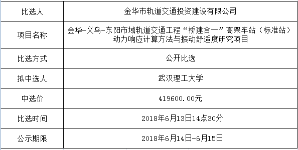 金華-義烏-東陽市域軌道交通工程軌道、公交乘車碼二碼融合清分系統集成項目的中標候選人公示