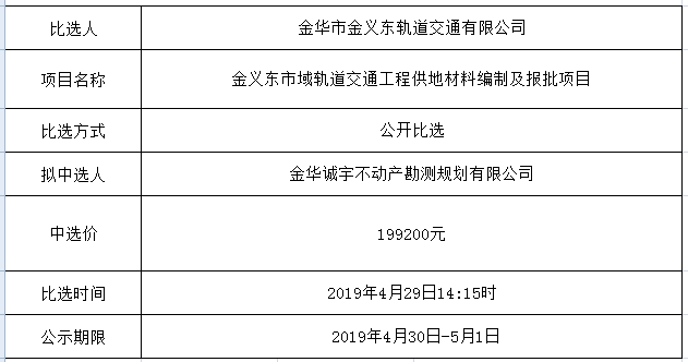 金華-義烏-東陽市域軌道交通工程軌道、公交乘車碼二碼融合清分系統集成項目的中標候選人公示