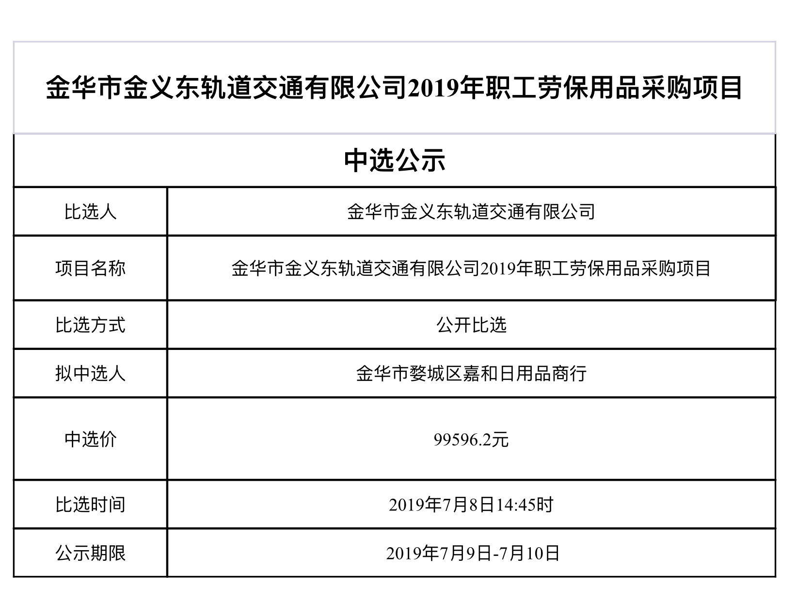 金華市軌道交通控股集團物業管理服務有限公司2025-2026年度勞務派遣人員工作服采購項目中標候選人公示