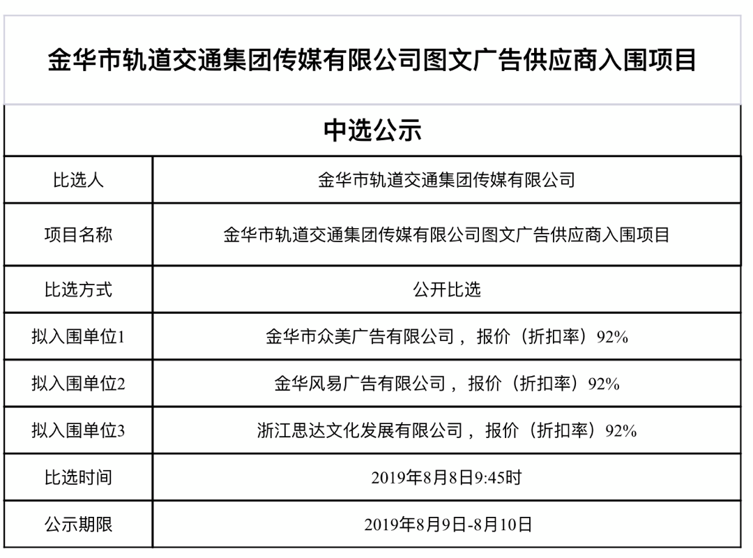 金華-義烏-東陽市域軌道交通工程軌道、公交乘車碼二碼融合AFC系統(tǒng)集成項(xiàng)目中標(biāo)候選人公示