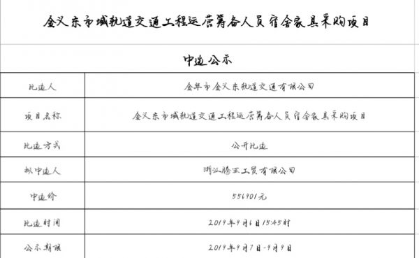 金華市軌道交通控股集團物業管理服務有限公司2025-2026年度勞務派遣人員工作服采購項目中標候選人公示