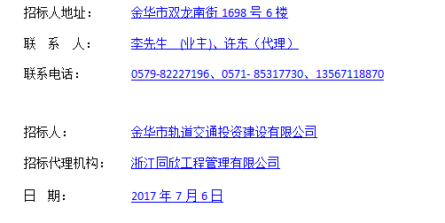 5、潛在投標人對招標文件有疑問的,通過浙江省公共資資源交易中心電子招投標交易平臺提交,提交疑問截止日為2017年7月13日16:30。招標人將于2017年7月20日前在網上發布補充(答疑、澄清)文件。潛在投標人應自行關注網站公告,招標人不再一一通知。投標人因自身貽誤行為導致投標失敗的,責任自負。