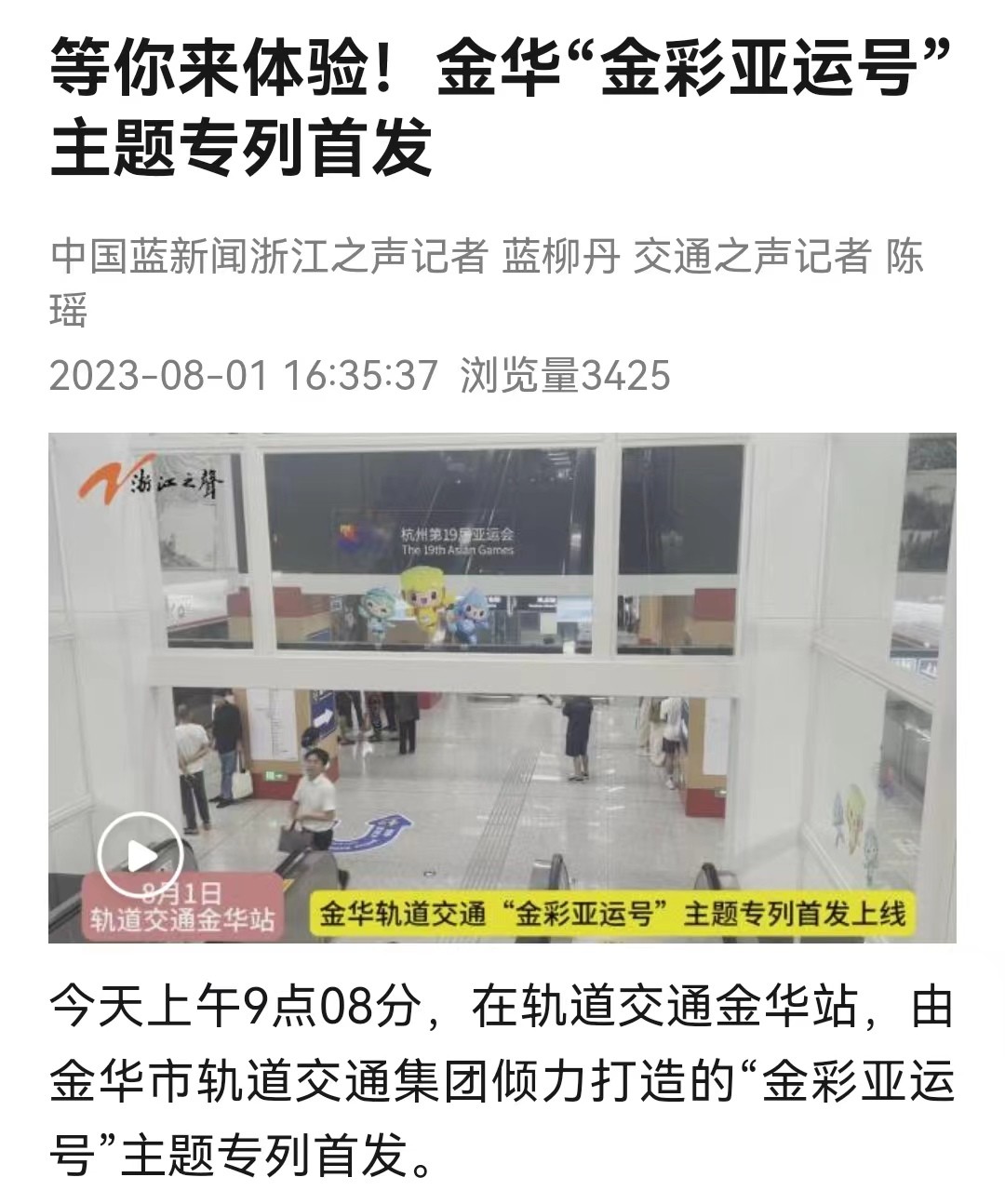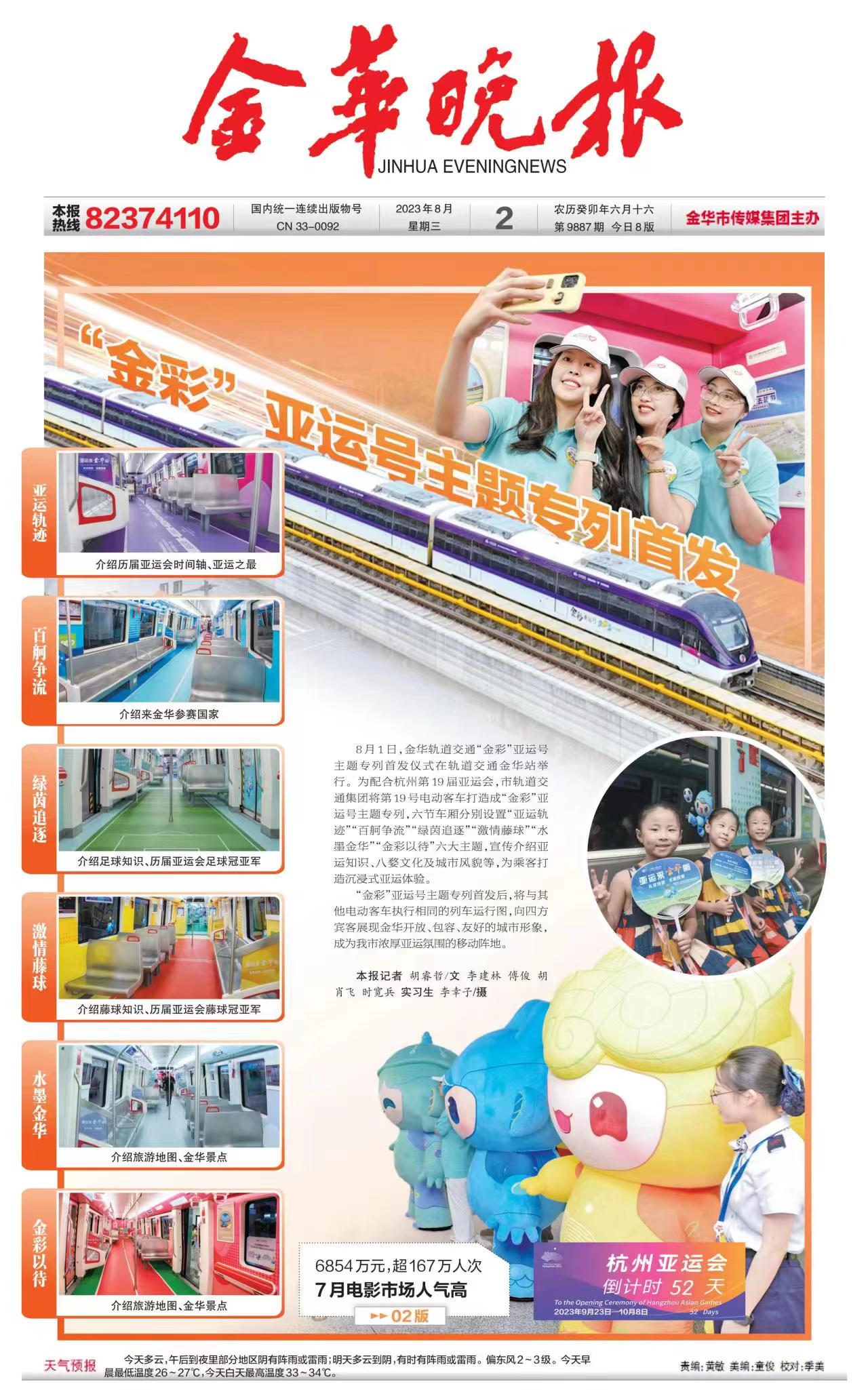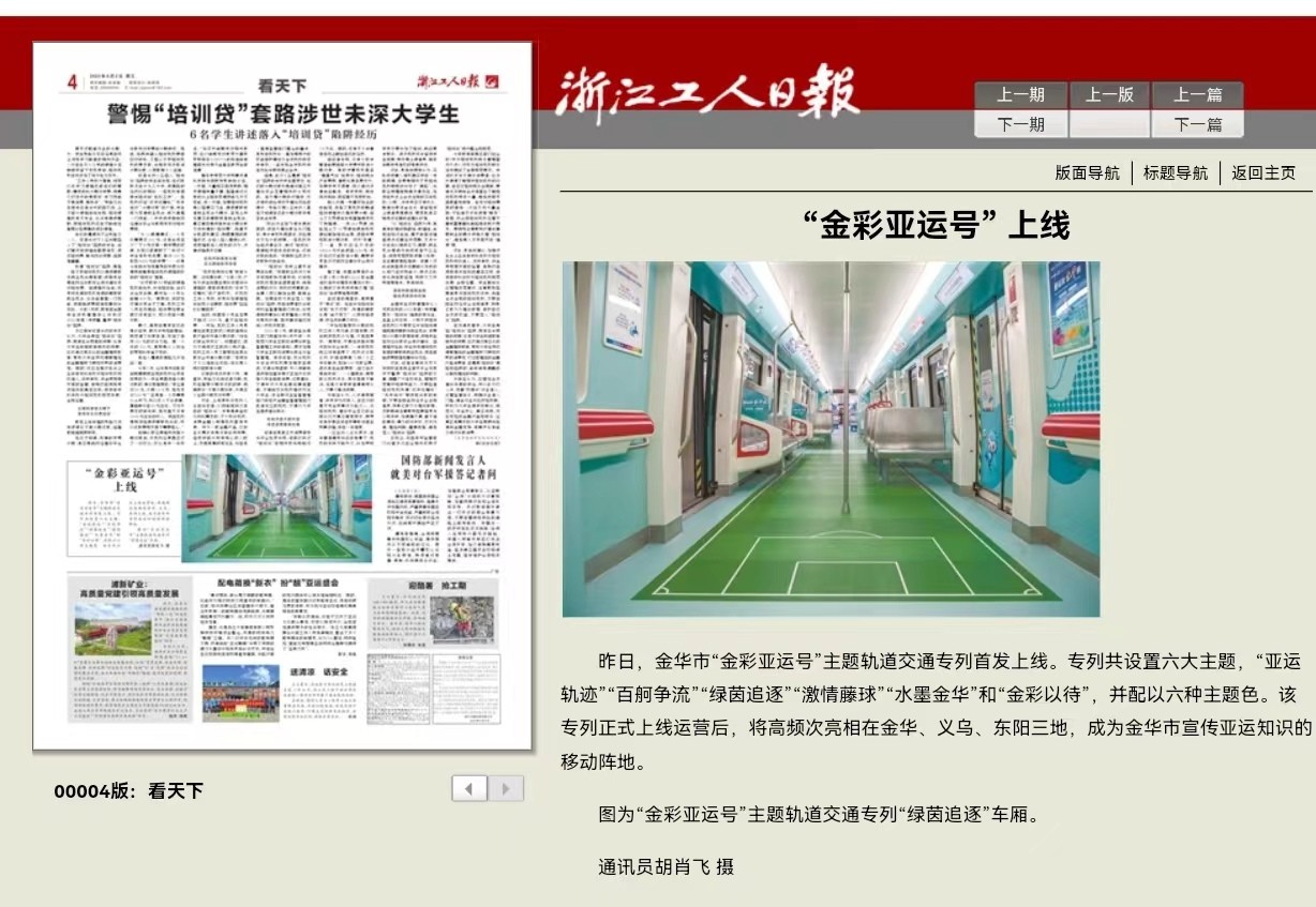 8月1日上午9點08分,由市軌道交通集團傾力打造的“金彩亞運號”主題專列首發上線。身披醒目虹韻紫的“金彩亞運號”主題專列一經面世,就受到了社會各界的廣泛關注。
